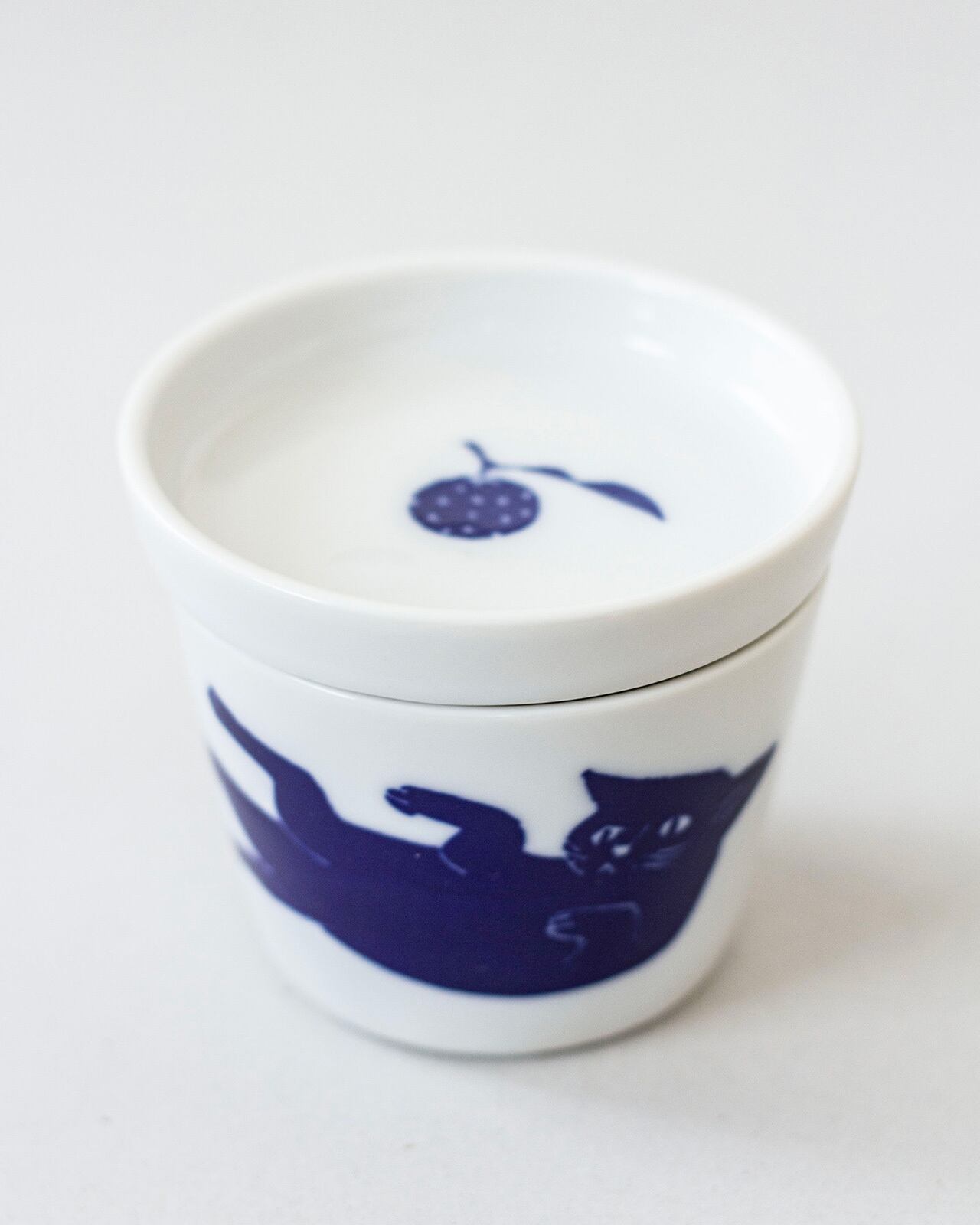 双寿園 ねこシリーズうどん猪口<くろねこ>蓋にもなる薬味皿付